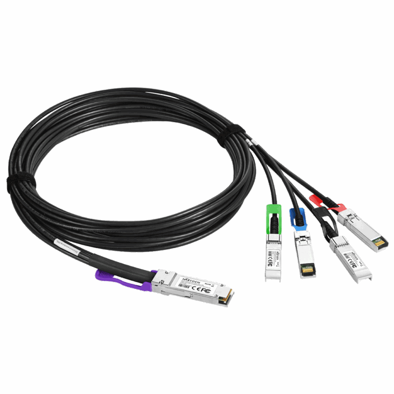- ≤1.8W | 33mm | 30AWG | TwinaxQSFP-SFP-DAC-XX-XMQSFP+ (40G) to 4x SFP+ (10G), Passive Direct Attach Copper Cable, 30AWG, (MFG)Compatible, XM